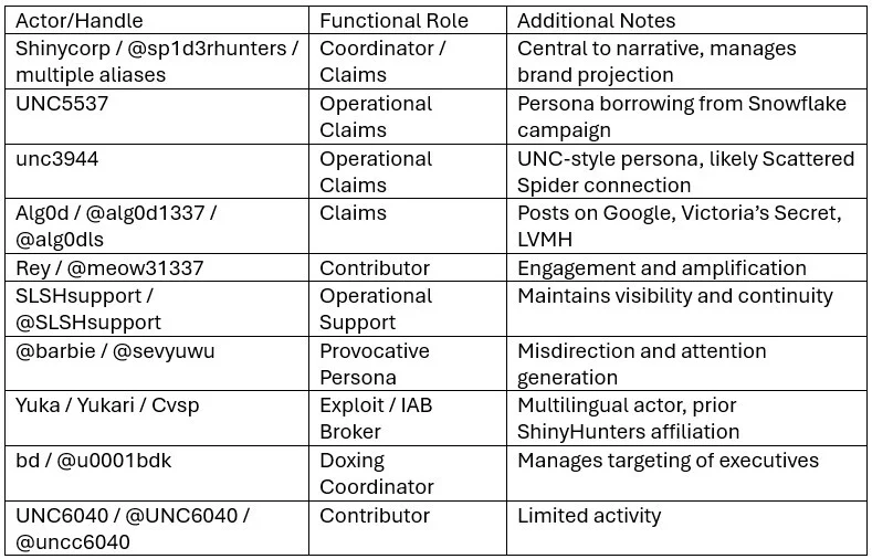 Some of the known threat clusters part of the crew are listed below, highlighting a cohesive alliance that brings together several semi-autonomous groups within The Com network and their technical capabilities under one umbrella –
