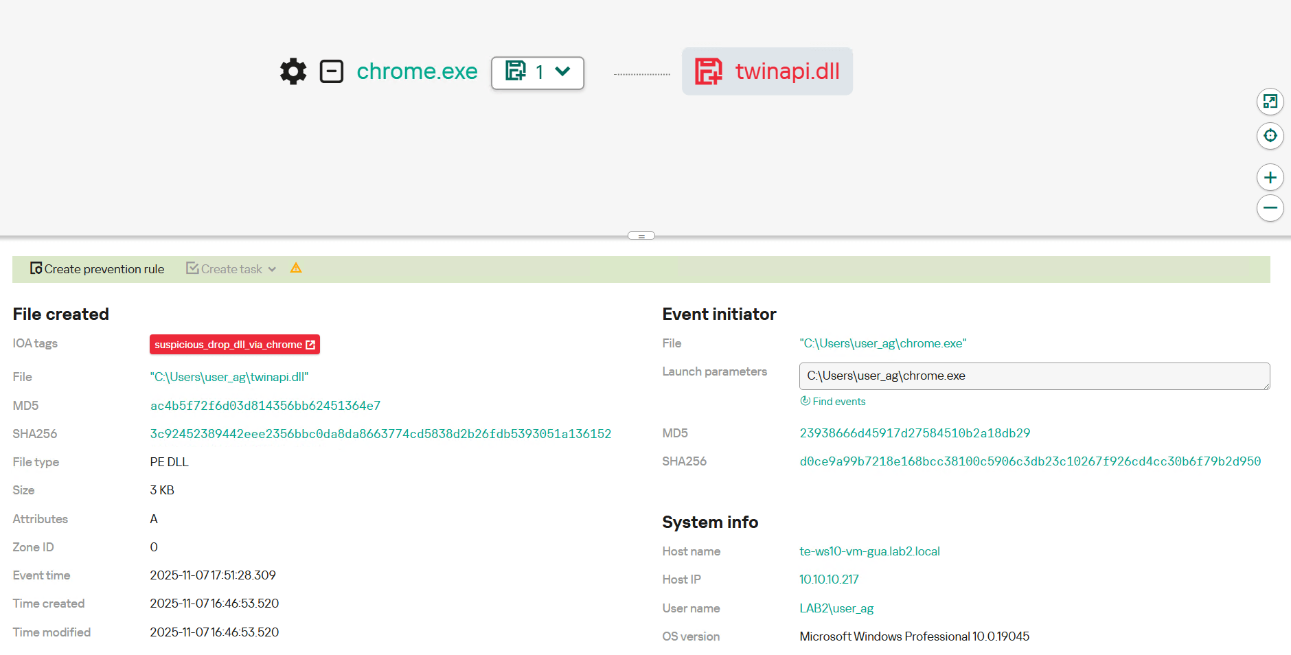 In March 2025, Kaspersky detected a wave of infections that occurred when users clicked on personalized phishing links sent via email. No further action was required to initiate the infection; simply visiting the malicious website using Google Chrome or another Chromium-based web browser was enough.