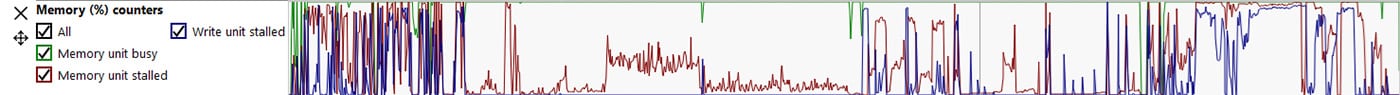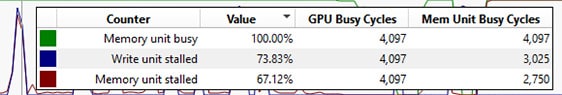 counter data, such as memory unit busy, memory unit stalled, and write unit