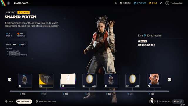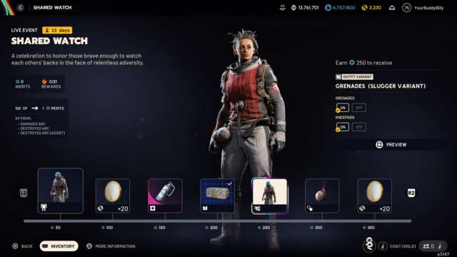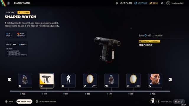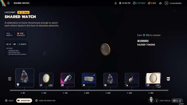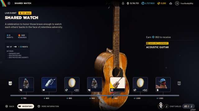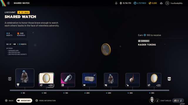 Once you’ve gained enough Merits, you’ll be able to unlock everything in the Shared Watch event reward track. If you’d like to know what to expect before you dive in, we’ve got every reward below alongside how many Merits you’ll need to unlock them.